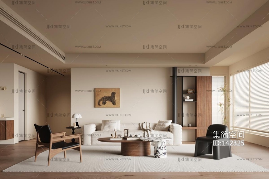 -现代中古风客厅 3d模型下载 [模型ID:142325]