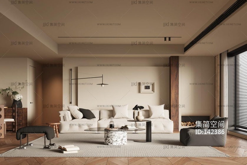 现代中古风客厅 3d模型下载 [模型ID:142386]