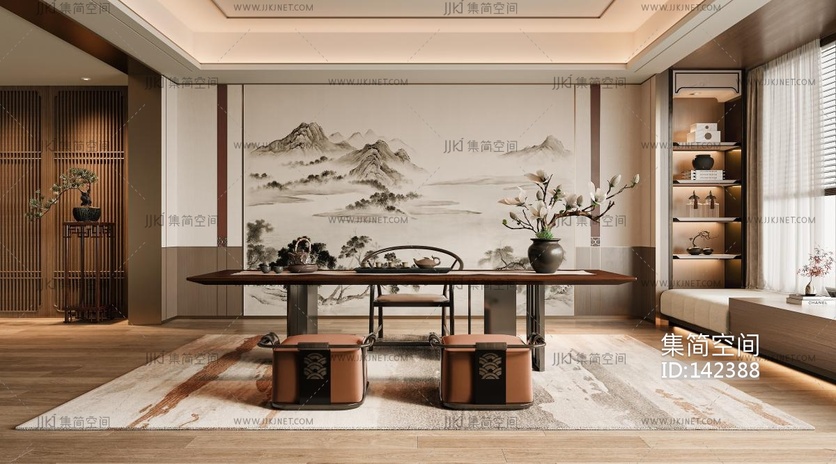 -新中式茶室 3d模型下载 [模型ID:142388]