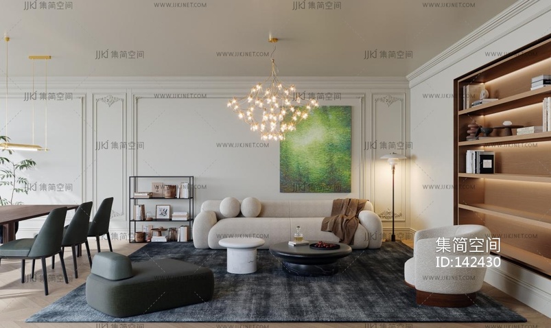 中古风客厅,美式客厅,圆形茶几,装饰画,移动电视,3d模型下载