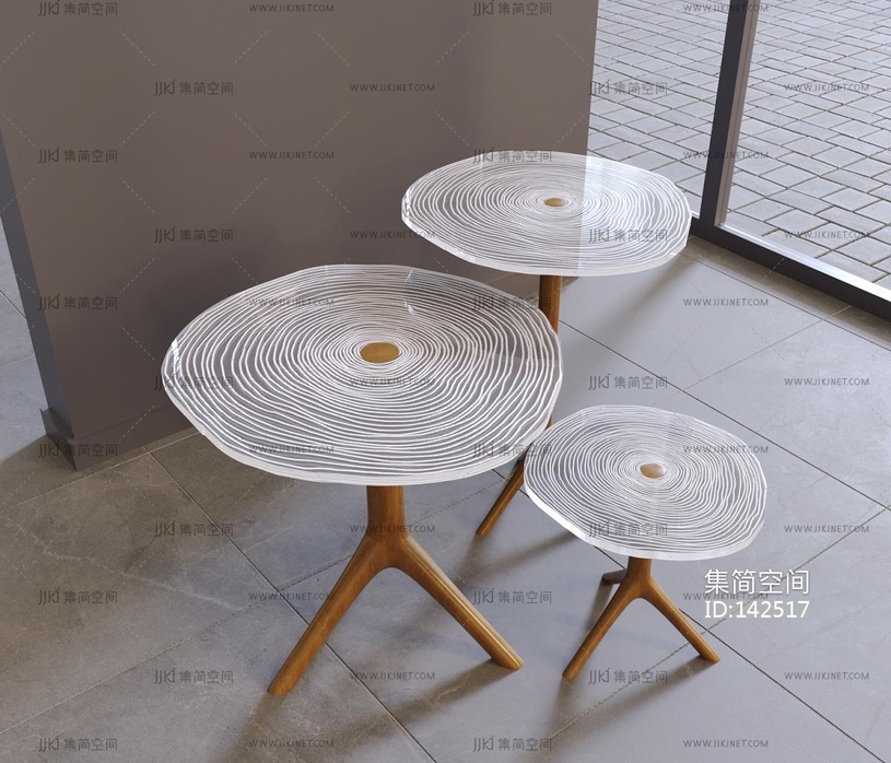 新中式年轮圆形边几 3d模型下载 [模型ID:142517]