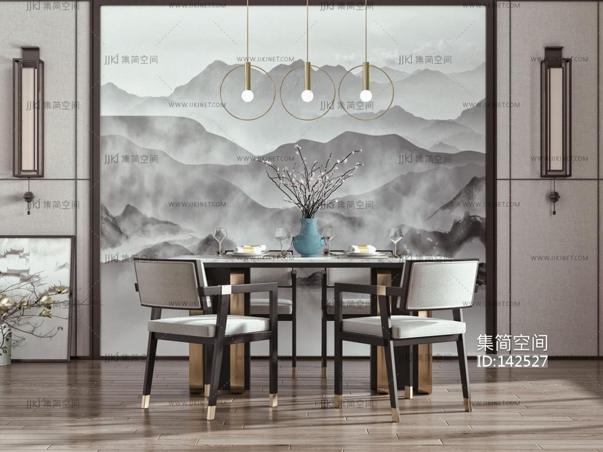 新中式餐厅 3d模型下载 3d模型下载 [模型ID:142527]