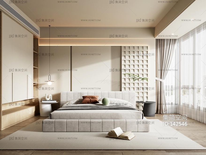 奶油风卧室 3d模型下载 [模型ID:142546]