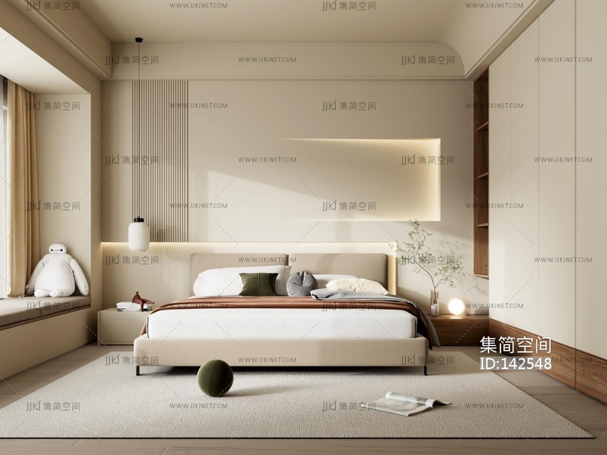 现代,卧室,奶油风卧室,双人床床头柜,地毯大白 3d模型下载 [模型ID:142548]