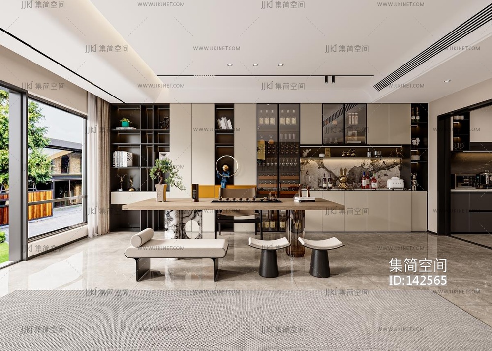 现代,简约,客餐厅茶台 3d模型下载 [模型ID:142565]