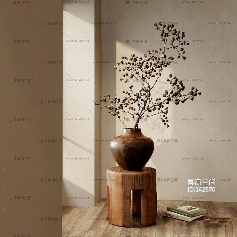 新中式侘寂风花艺花瓶 3d模型下载 [模型ID:142570]
