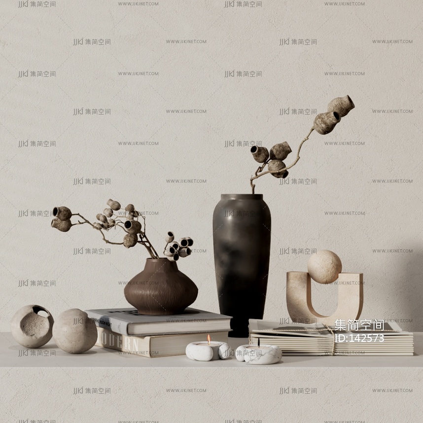 新中式侘寂 摆件组合 奶油装饰 3d模型下载 [模型ID:142573]