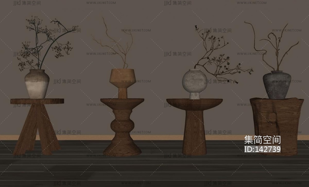 侘寂花瓶花艺SU模型 su草图模型下载 [模型ID:142739]