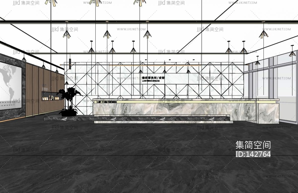 现代办公大堂SU模型 su草图模型下载 [模型ID:142764]