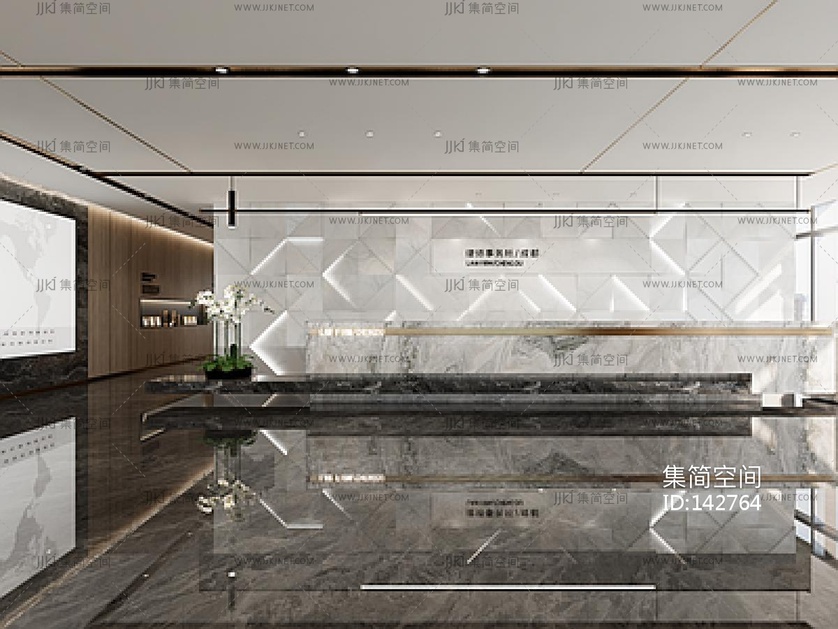 现代办公接待前台SU模型su草图模型下载
