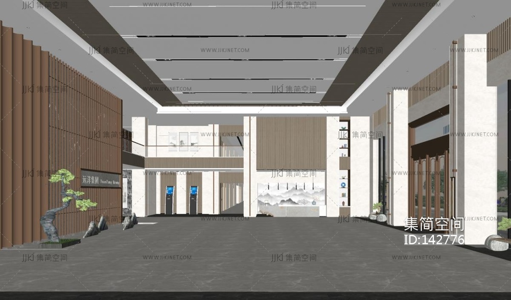 侘寂酒店大堂SU模型su草图模型下载