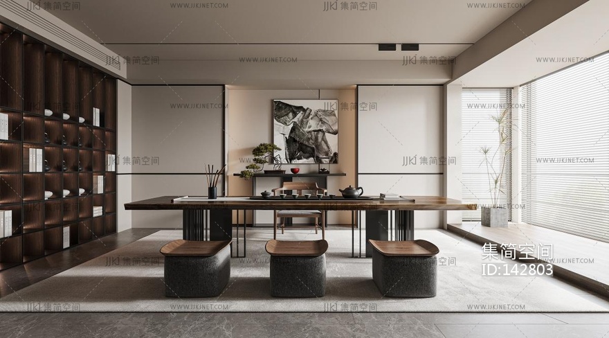 新中式茶室 茶桌椅组合,茶台 3d模型下载 [模型ID:142803]