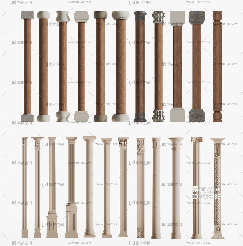 现代装饰柱_柱子中式柱子组合3D模型3d模型下载