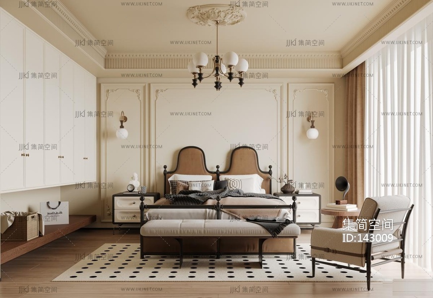 6法式中古家居卧室_主卧_飘窗卧室_高级灰卧室3D模型cr3d模型下载