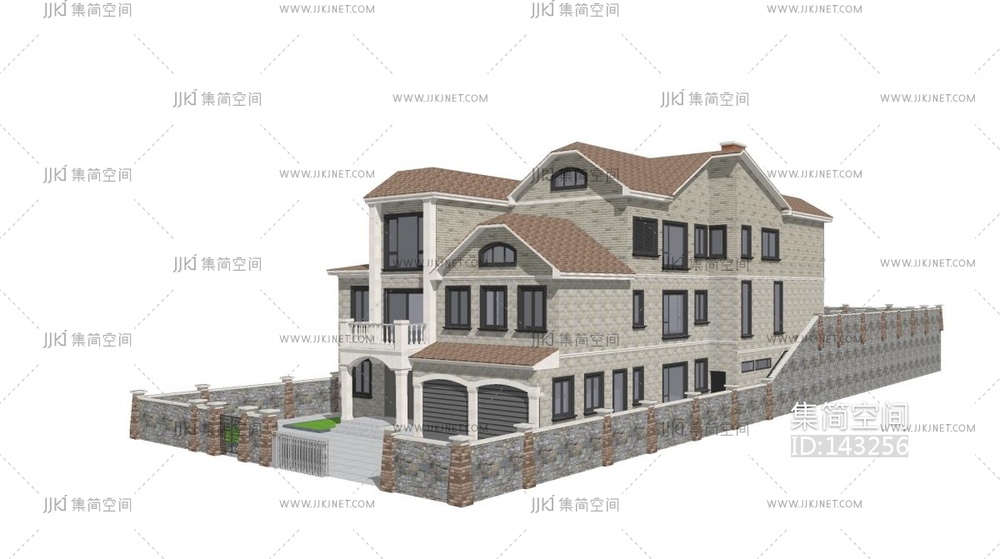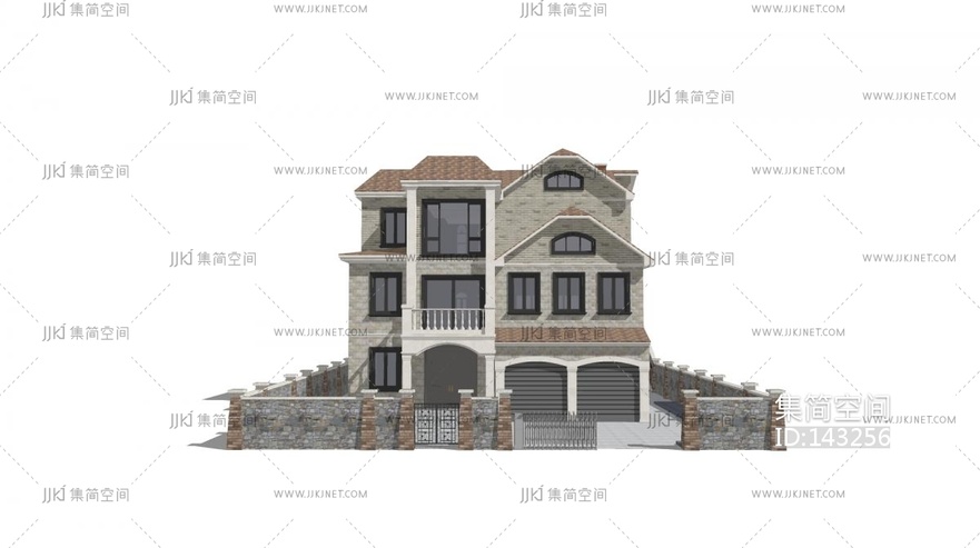 简欧独栋别墅 su草图模型下载 [模型ID:143256]