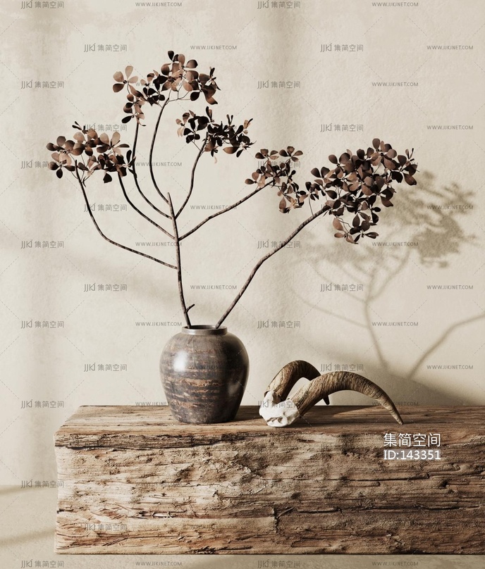 侘寂风花艺摆件 3d模型下载 [模型ID:143351]