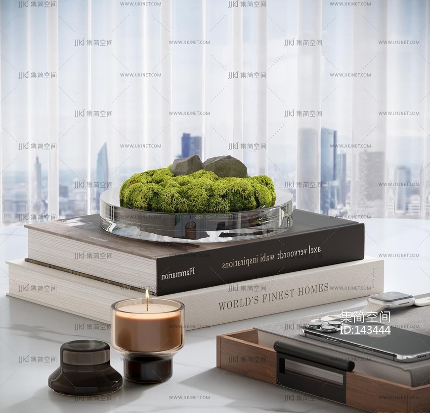现代托盘摆件苔藓书籍书本酒店用品装饰组合3D模型3d模型下载