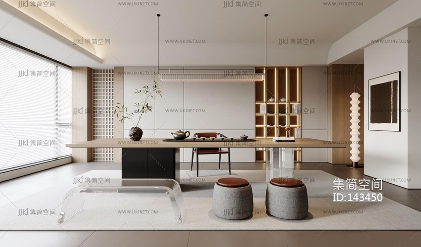 现代茶室_茶桌椅组合 3d模型下载 [模型ID:143450]