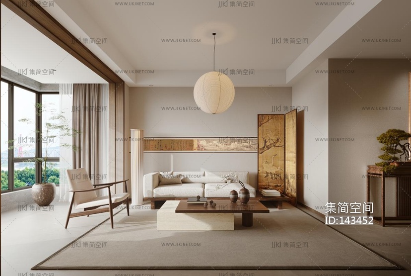 中古风客厅 沙发茶几组合 背景墙3d模型下载