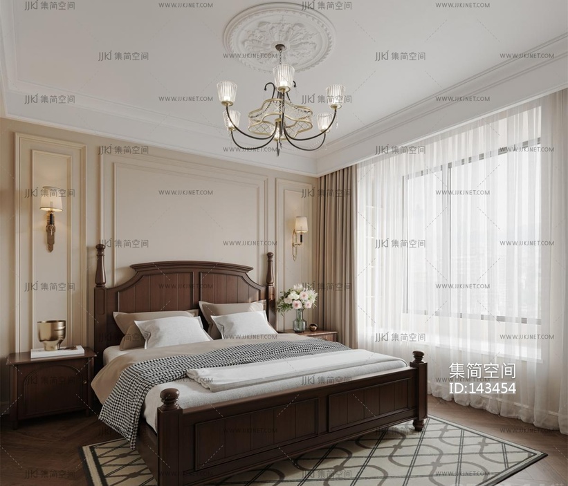 6法式中古家居卧室_主卧_飘窗卧室_高级灰卧室3D模型cr3d模型下载