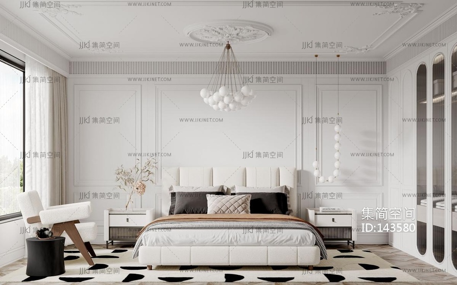 6法式中古家居卧室_主卧_飘窗卧室_高级灰卧室3D模型cr3d模型下载