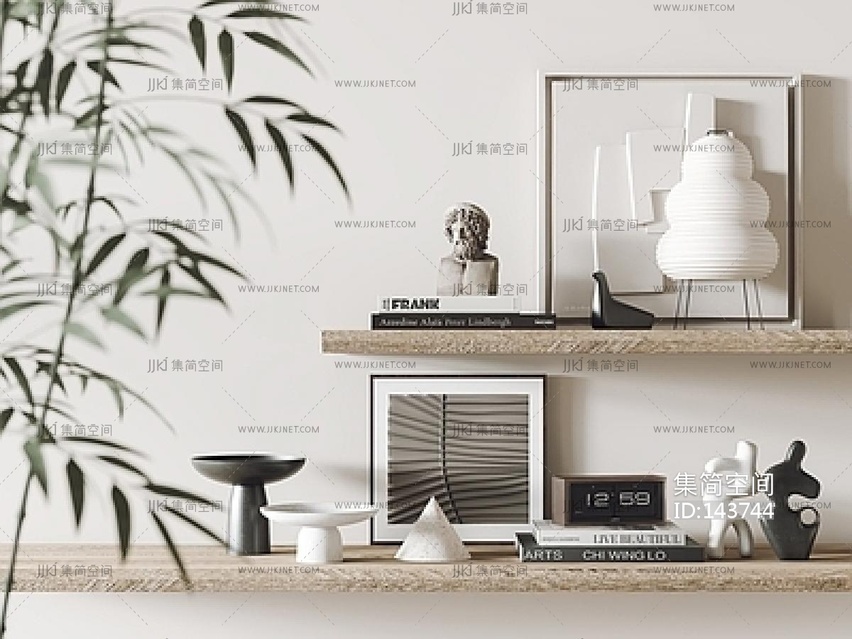 现代新中式雕塑摆件_饰品摆件组合3D模型3d模型下载