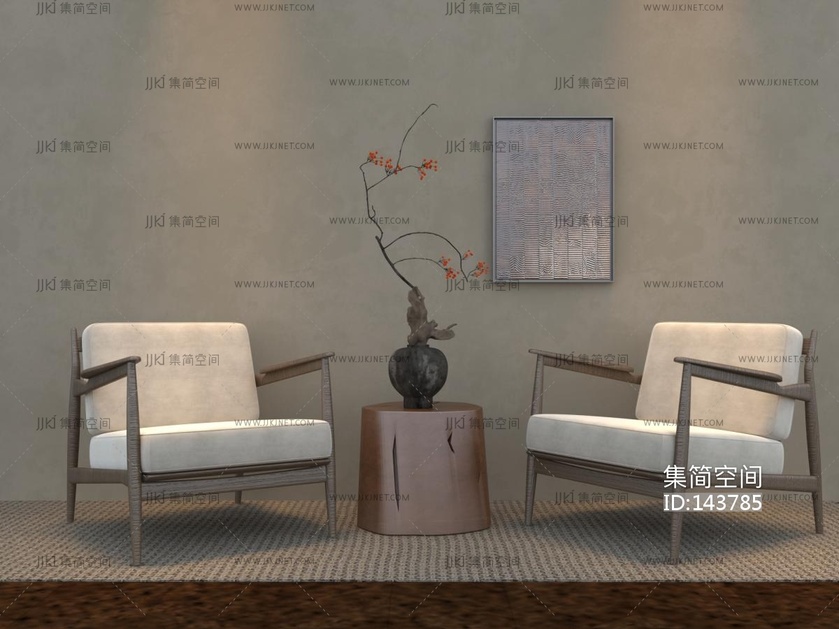 侘寂风布艺单人沙发 3d模型下载 [模型ID:143785]