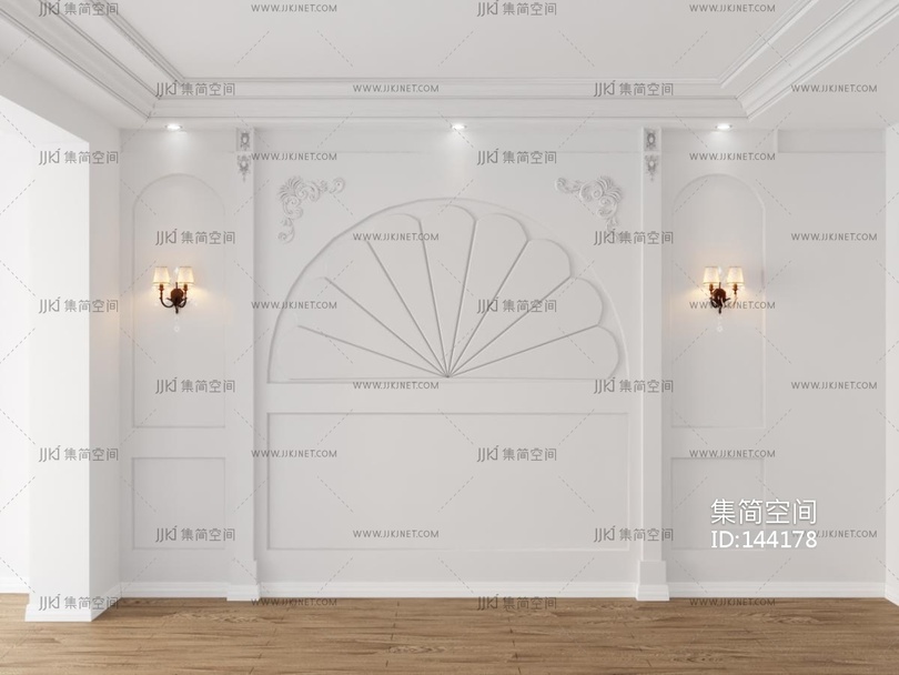法式古典雕花护墙板墙面水晶壁灯欧式皮革软包墙面3d模型3d模型下载