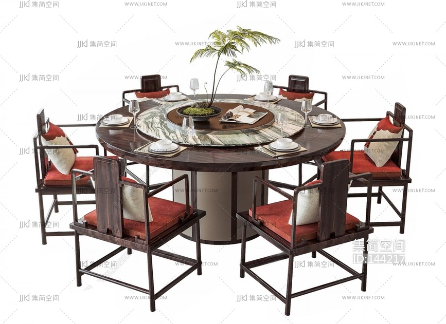 新中式餐桌椅组合 3d模型下载 [模型ID:144217]