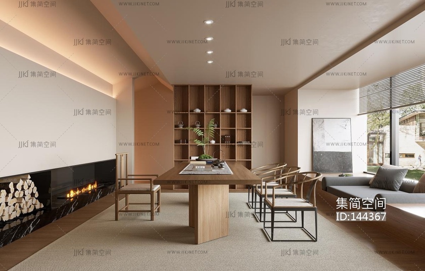 -新中式茶室_茶桌椅组合 3d模型下载 [模型ID:144367]