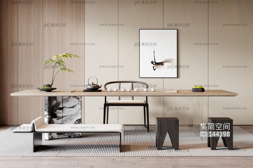 现代书房 书桌椅 壁柜 挂画 吊灯 书 盆栽 摆件3d模型下载