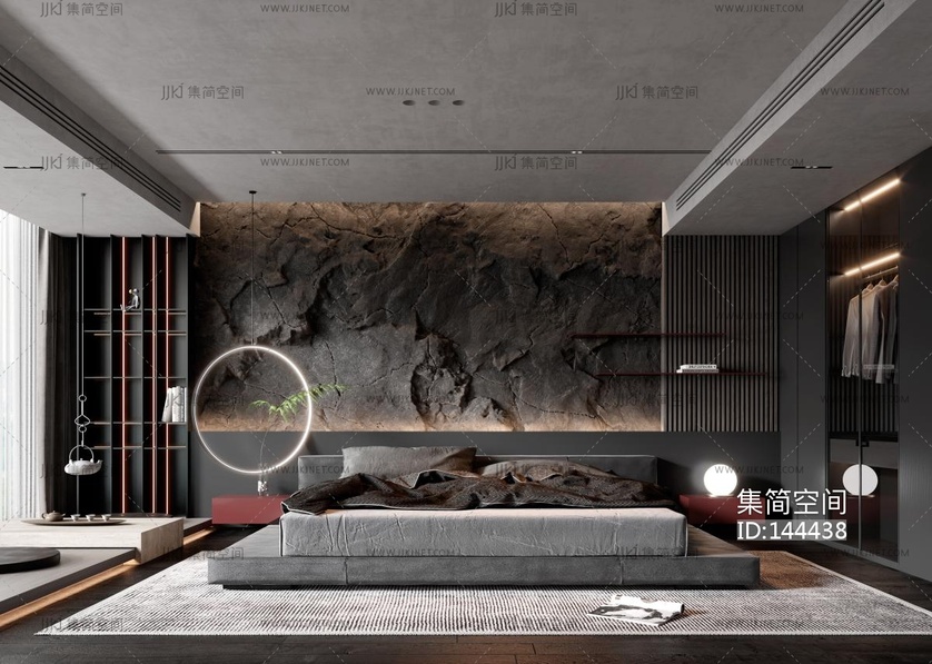 现代 卧室双人床 3d模型下载 [模型ID:144438]
