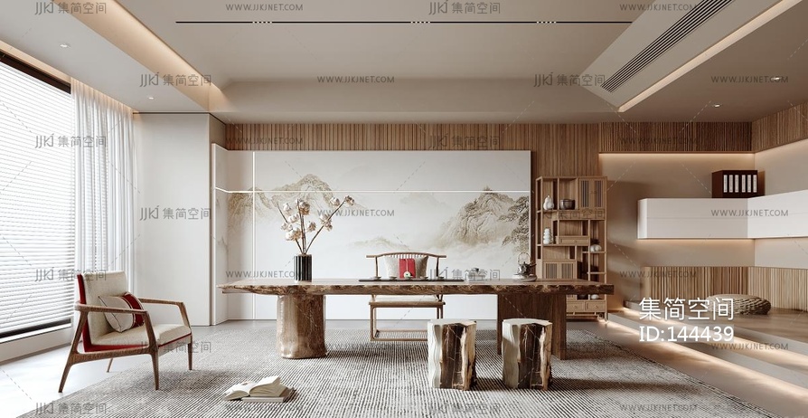 新中式茶室 茶桌 矮凳 3d模型下载 [模型ID:144439]