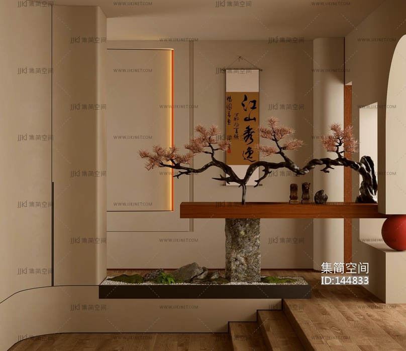 新中式玄关3d模型下载