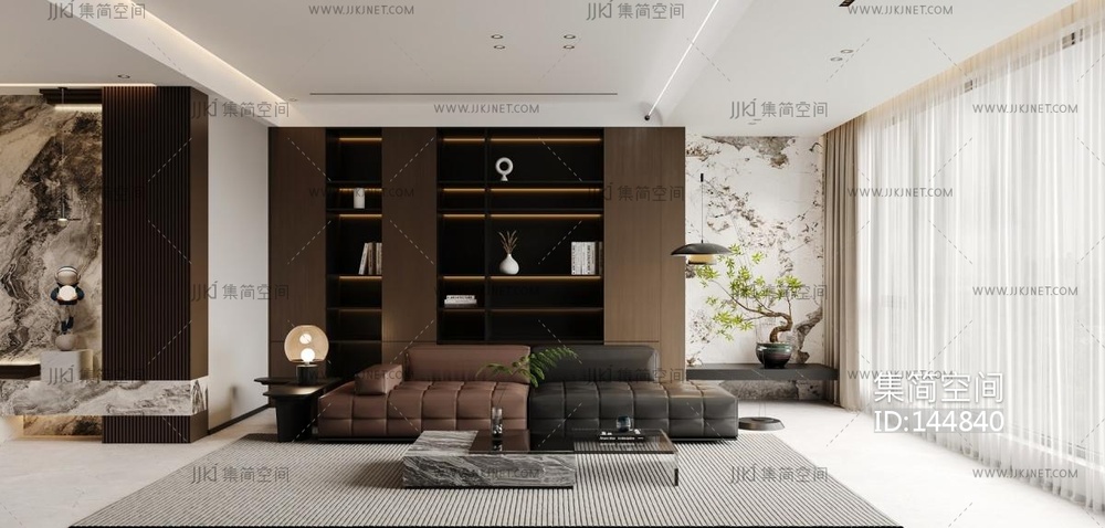 客餐厅现代客厅橱柜电视背景墙,奶油风休闲椅3d模型下载