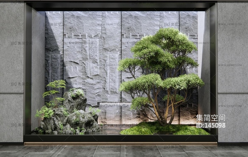新中式景观小品苔藓水景雕塑3d模型下载