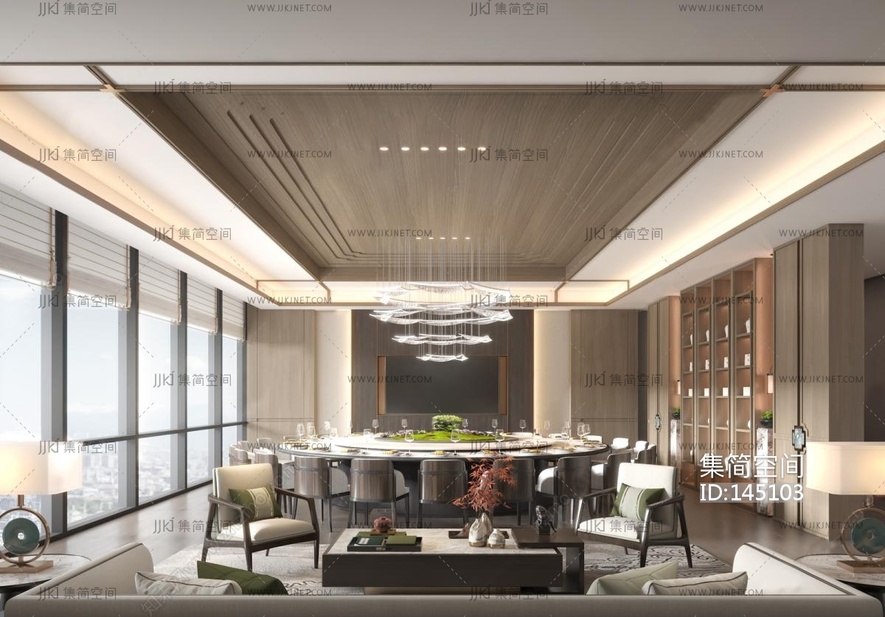 新中式餐厅包厢 3d模型下载 [模型ID:145103]