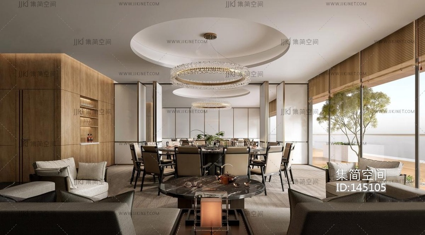 现代酒店餐厅 3d模型下载 [模型ID:145105]