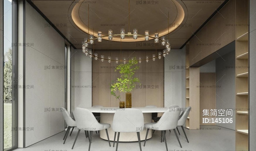 13-现代奶油风餐厅3d模型下载