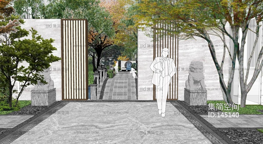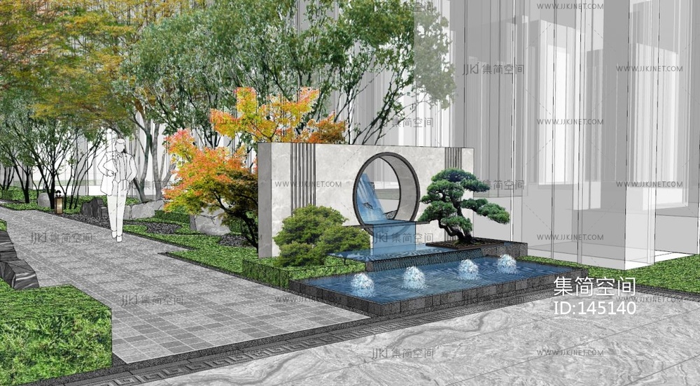 现代玄关植物造景,景观小品SU模型su草图模型下载