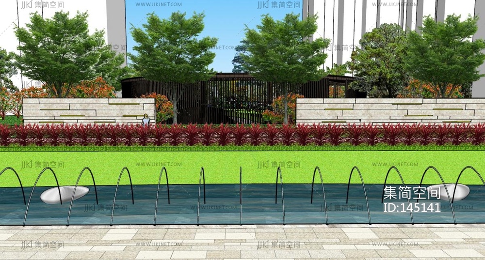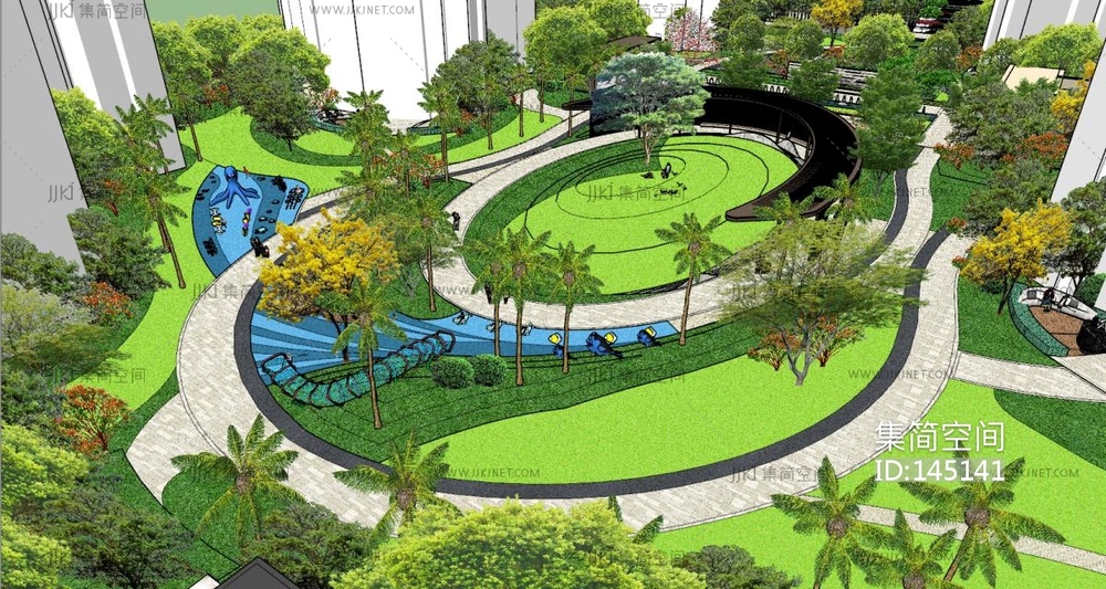 现代小区住宅景观,廊架SU模型su草图模型下载