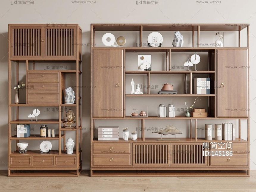 新中式博古架摆台花架佛头竹简3D模型3d模型下载
