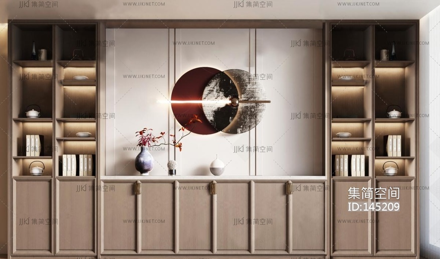 -新中式书柜 3d模型下载 [模型ID:145209]