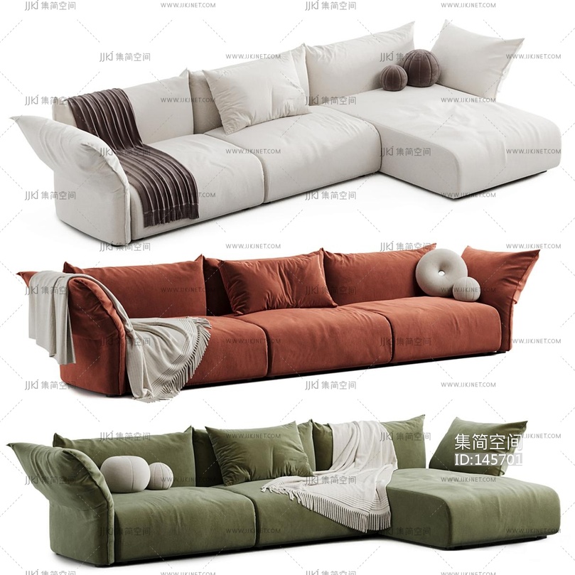 现代沙发三人沙发拼接沙发3D模型3d模型下载