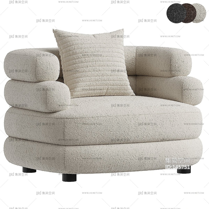现代奶油单人沙发_ 3d模型下载 [模型ID:145751]