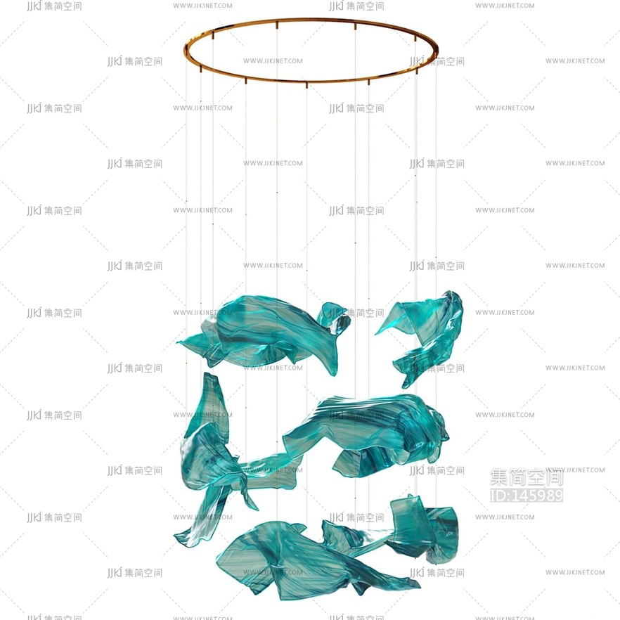 现代吊灯_玻璃飘带吊饰 3d模型下载 [模型ID:145989]