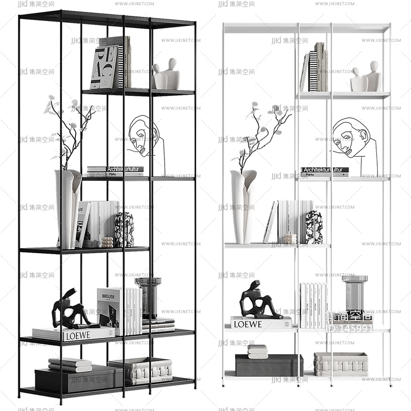 现代展示柜_装饰柜_手办柜玻璃书柜3D模型3d模型下载