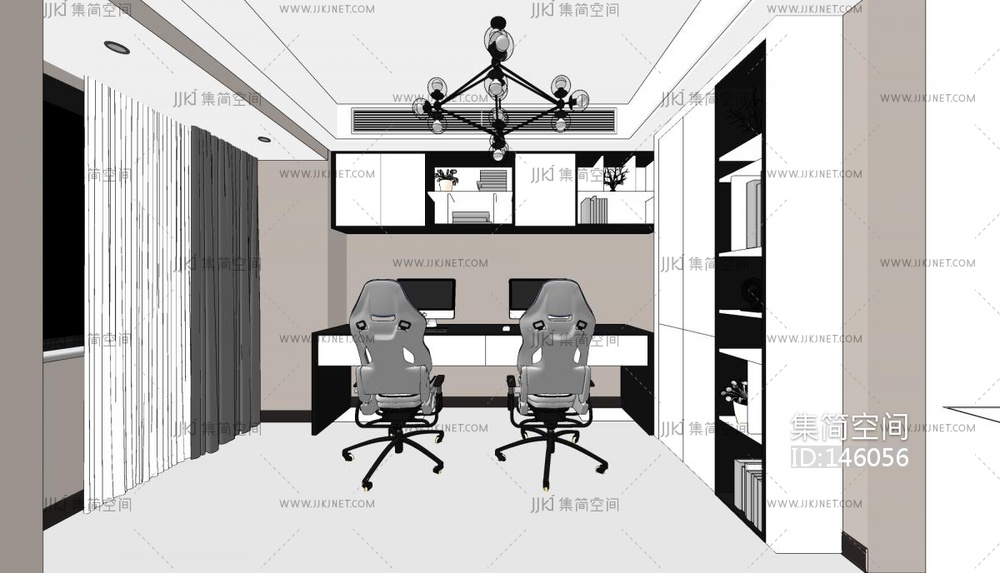 现代书房 su草图模型下载 [模型ID:146056]