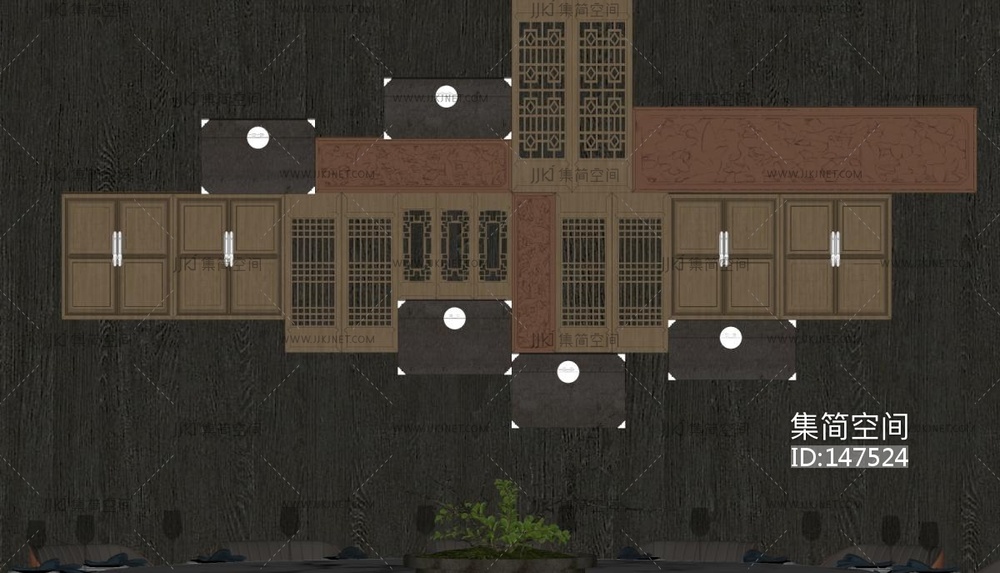 新中式墙饰挂件_ su草图模型下载 [模型ID:147524]