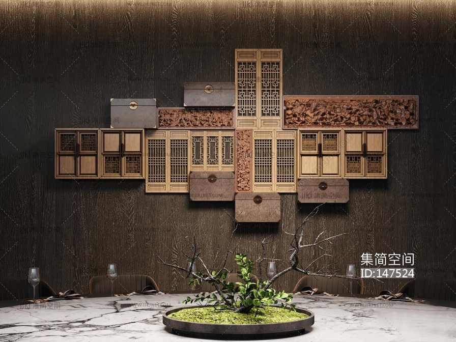现代新中式挂件_现代开放柜木雕饰_装饰墙_工具_木工SU模型2su草图模型下载
